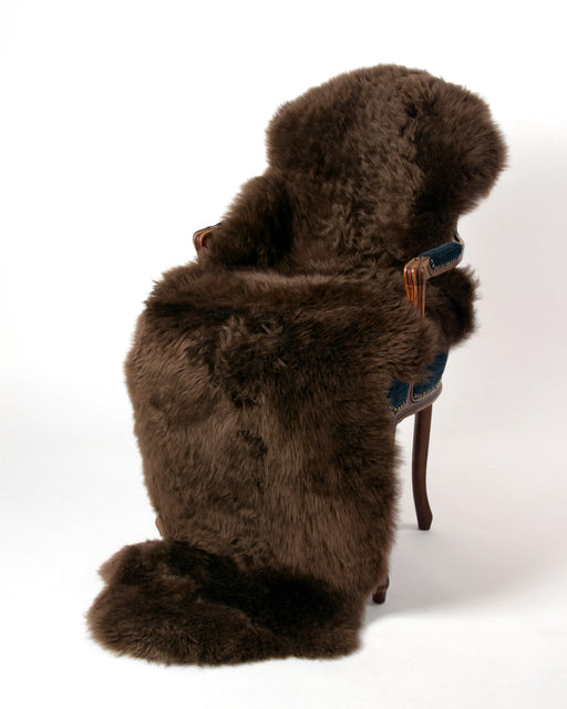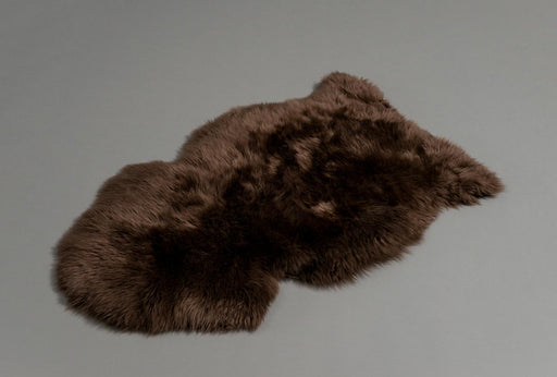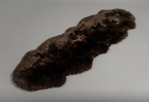 View full detailsThis dyed chocolate brown wool rug uses two whole sheepskins that are sewn together to form a long double rug from expertly matched New Zealand she...