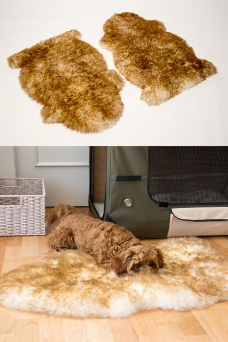 Pet Sheepskin Rugs - TWO Large Natural Shape Beds 50x80cm