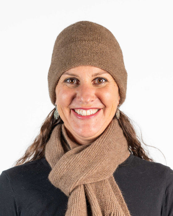 Crafted with care and precision, this unisex beanie is firmer fitting, hugging your head to stay in place, featuring a turned-back band that you can adjust to suit your head. This Mink is a little bit darker and contains more possum fur than the luxury blend so we call it Mink #2. This matches the NX102 scarf.