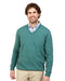 This is a new mist green men's possum merino sweater by Native World. A light weight knit with a vee-neck. This works well with a business shirt.