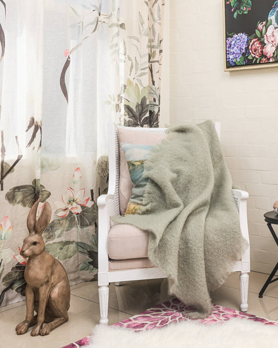 Cuddle up with an sage green mohair knee throw on your sofa or favourite chair.