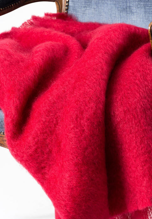 A bright scarlet red mohair blanket 130cm x 185cm (51” x 73”) the perfect size to cover your bed or sofa.